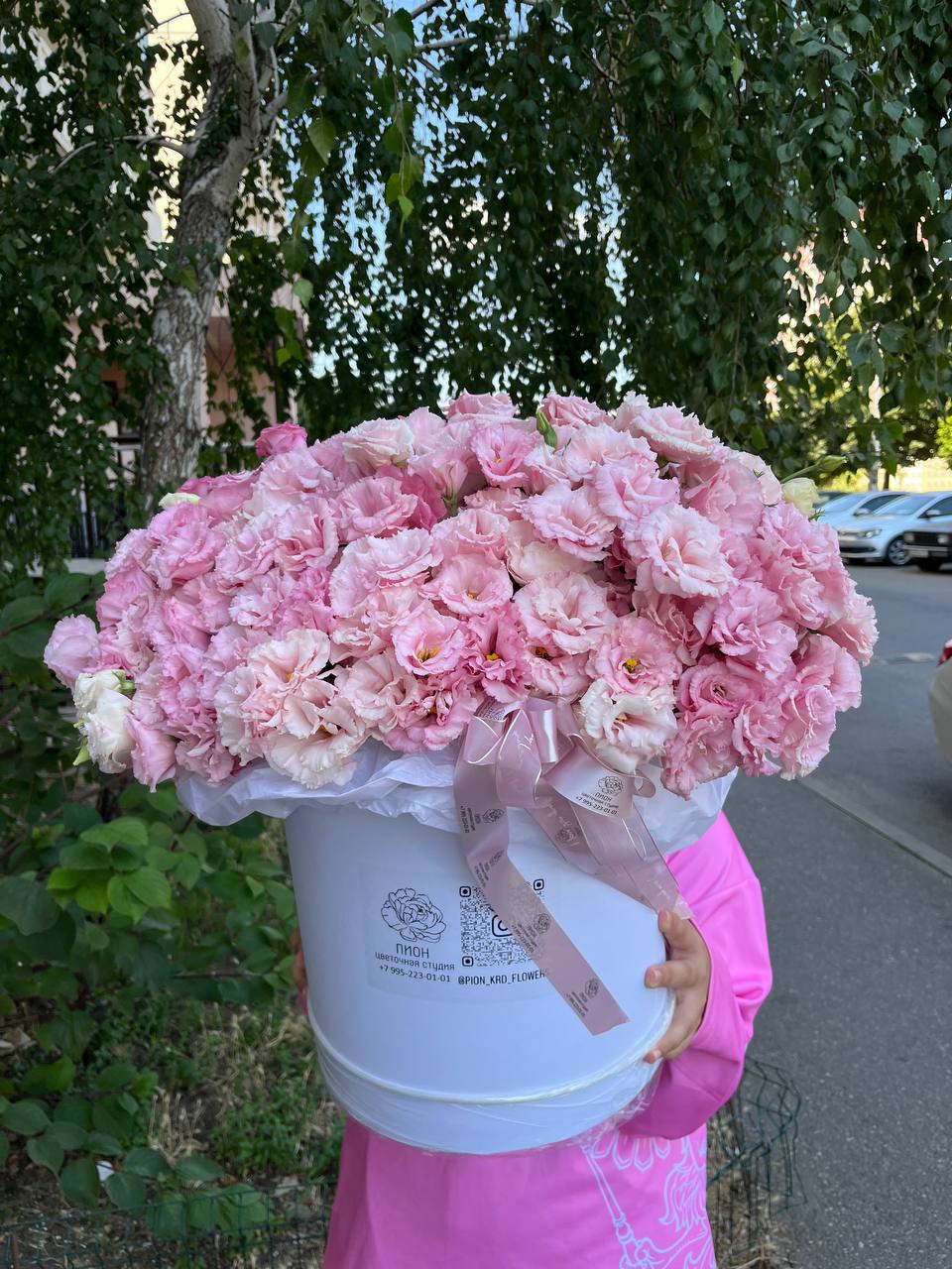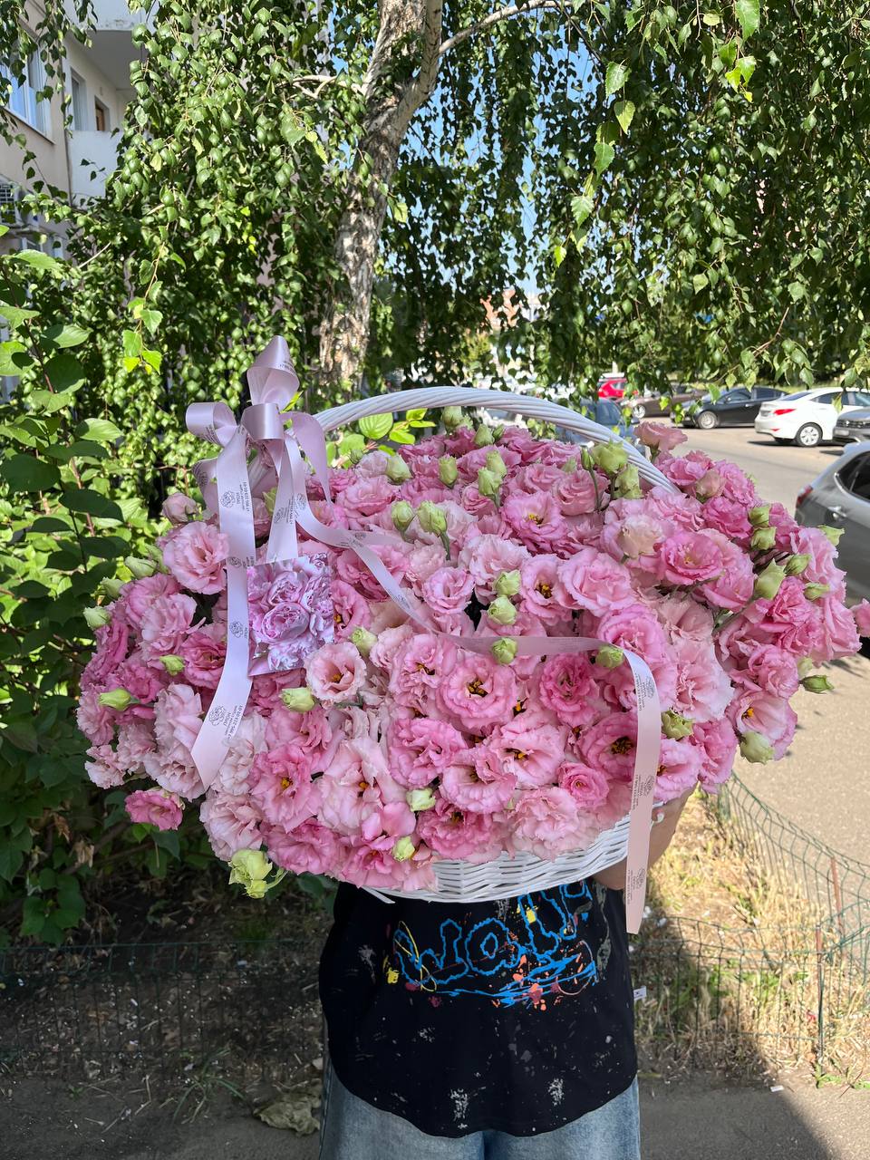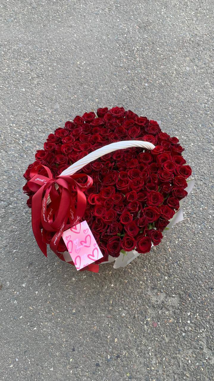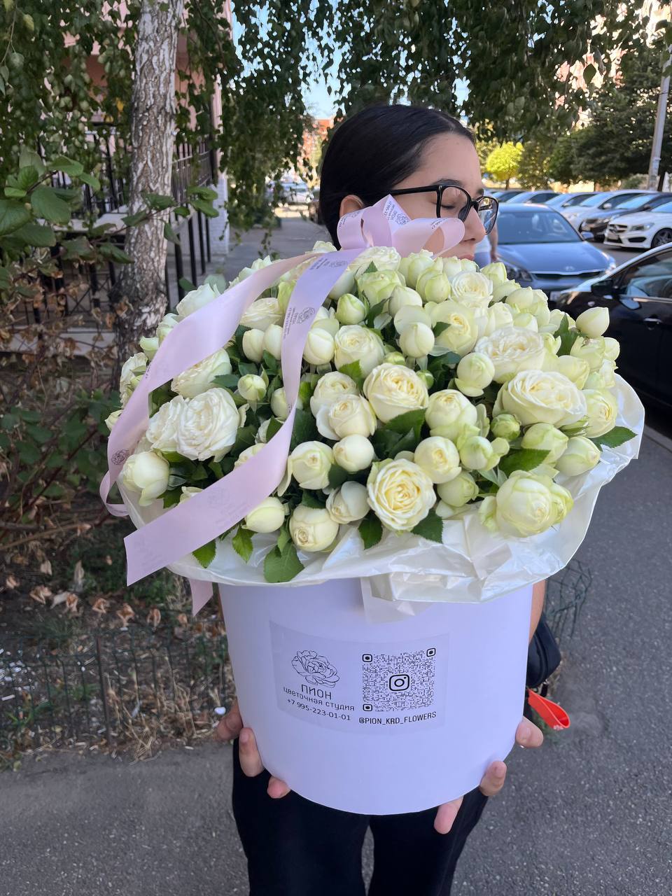 Корзина из вывернутых роз и пионовидной кустовой розы