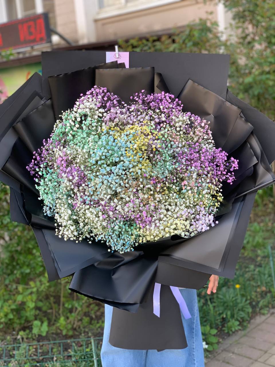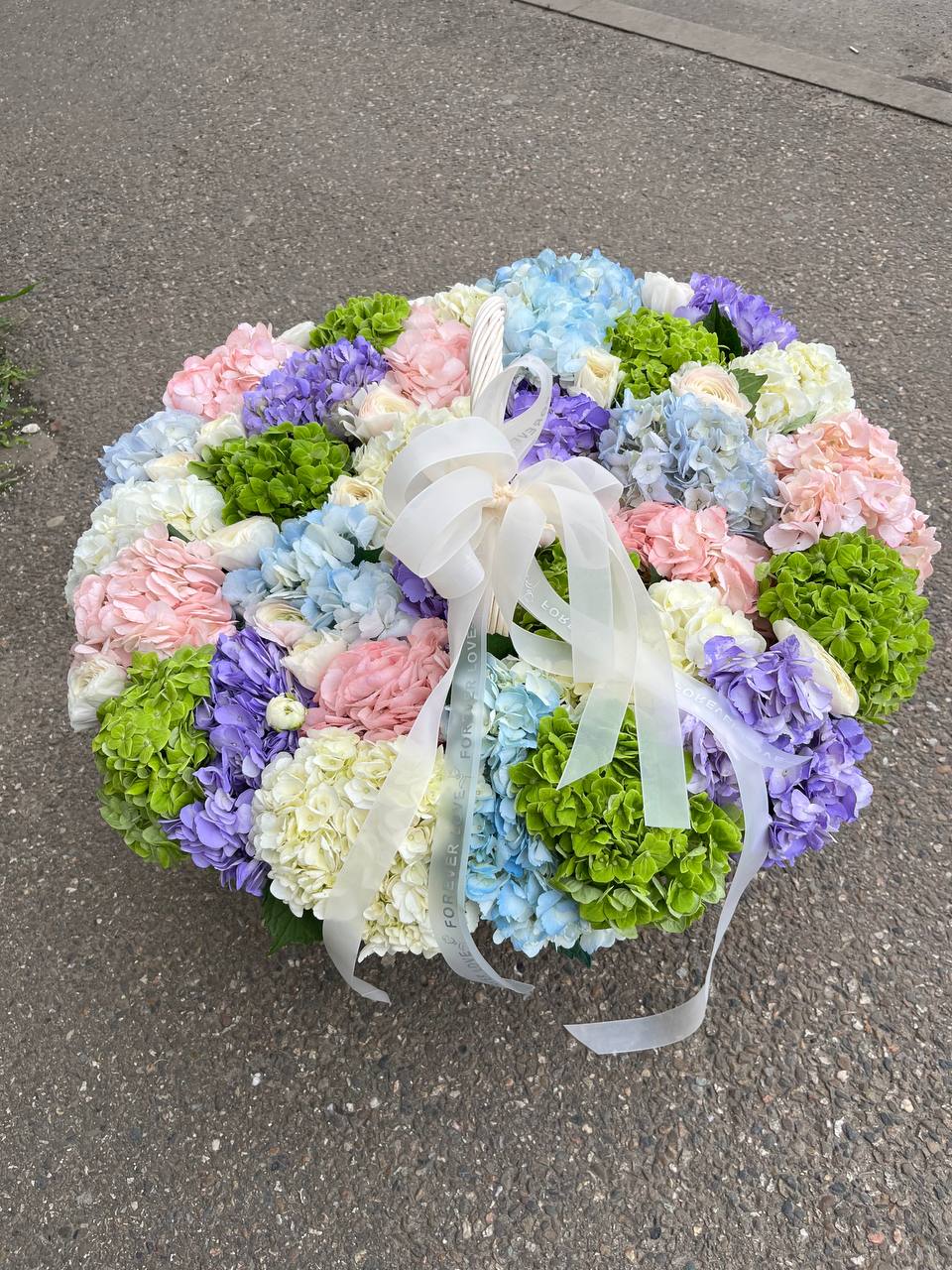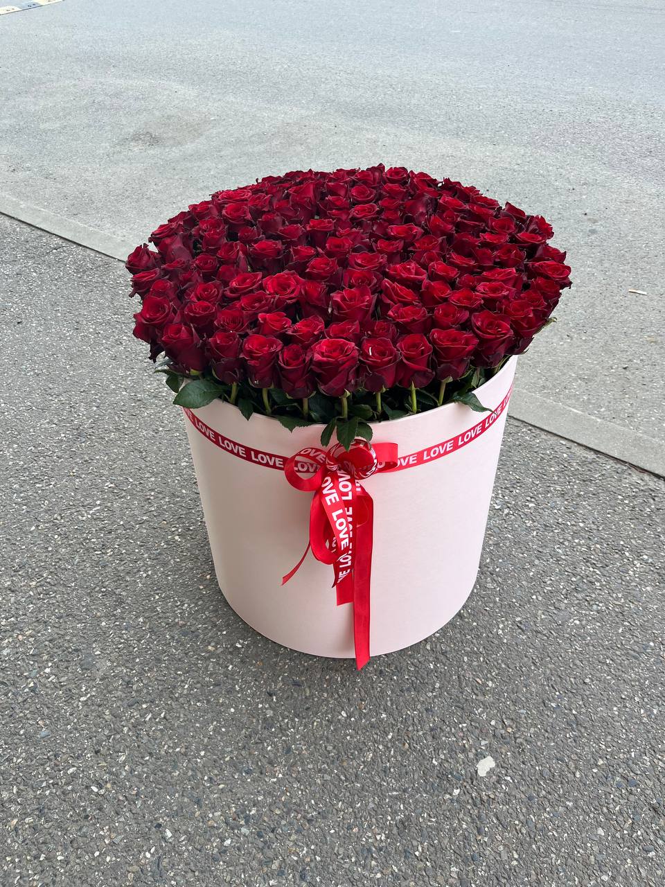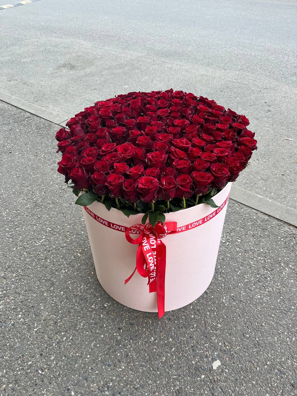 Корзина из вывернутых роз и пионовидной кустовой розы