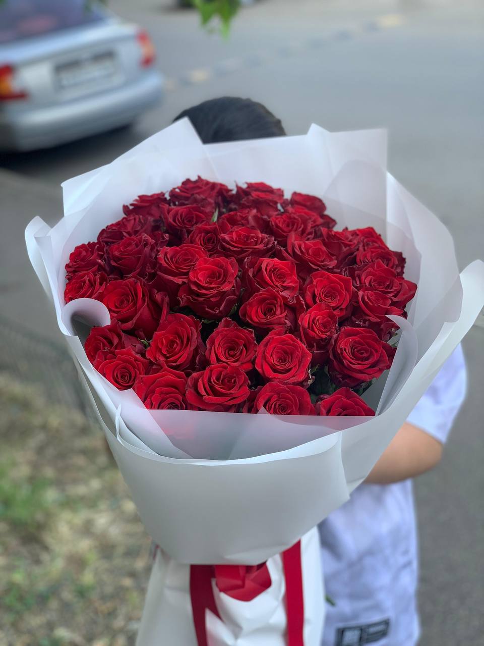 Букет из 31 ветки пионовидных кустовых роз Марун