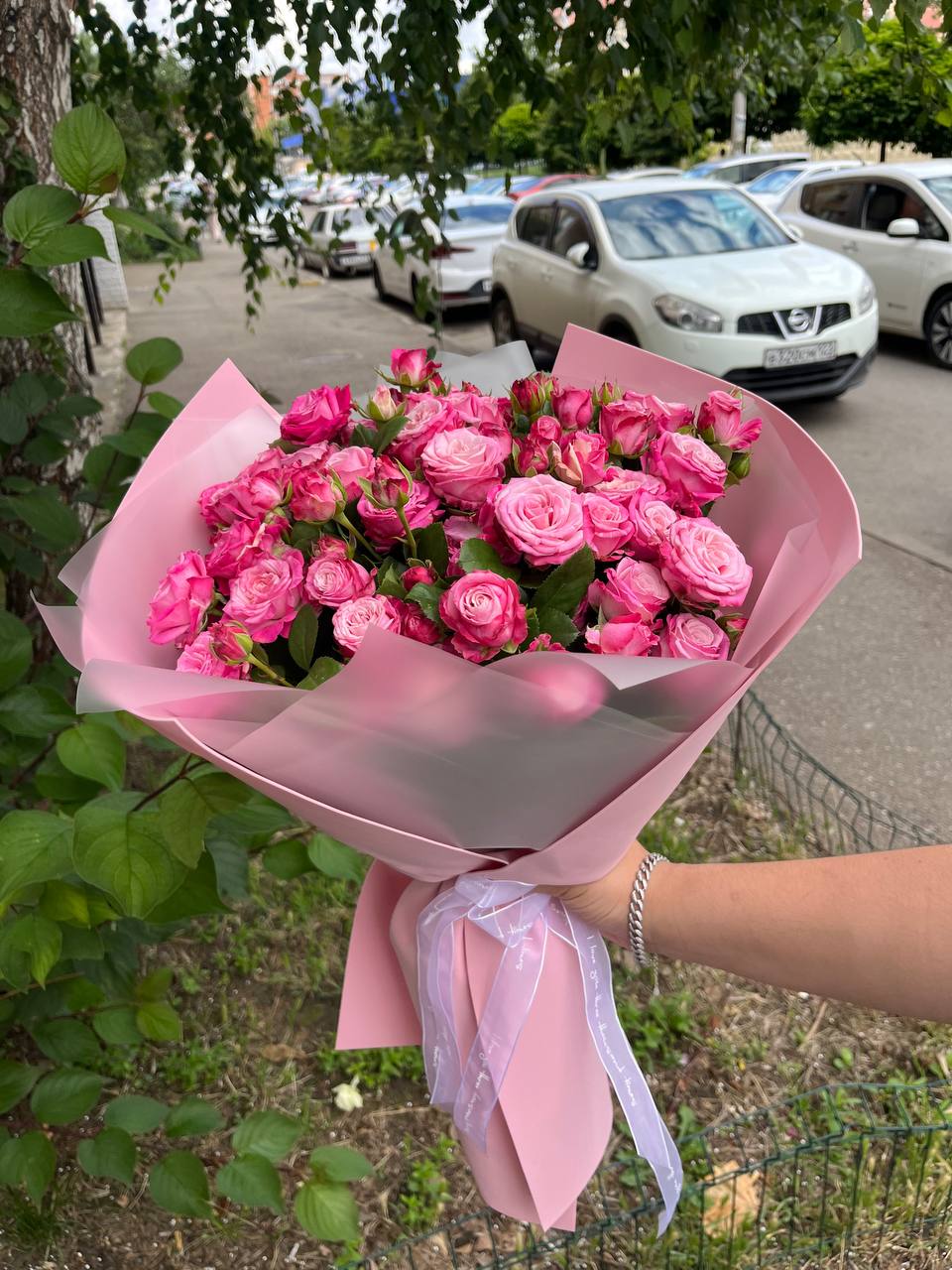 Букет из 19 веток кустовой розы Пинк Деменшион