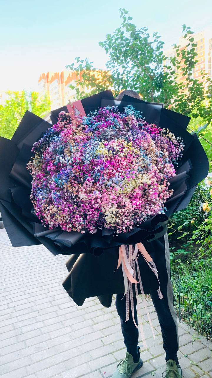 Букет огромный высотой 1.70 м из гипсофилы разных цветов