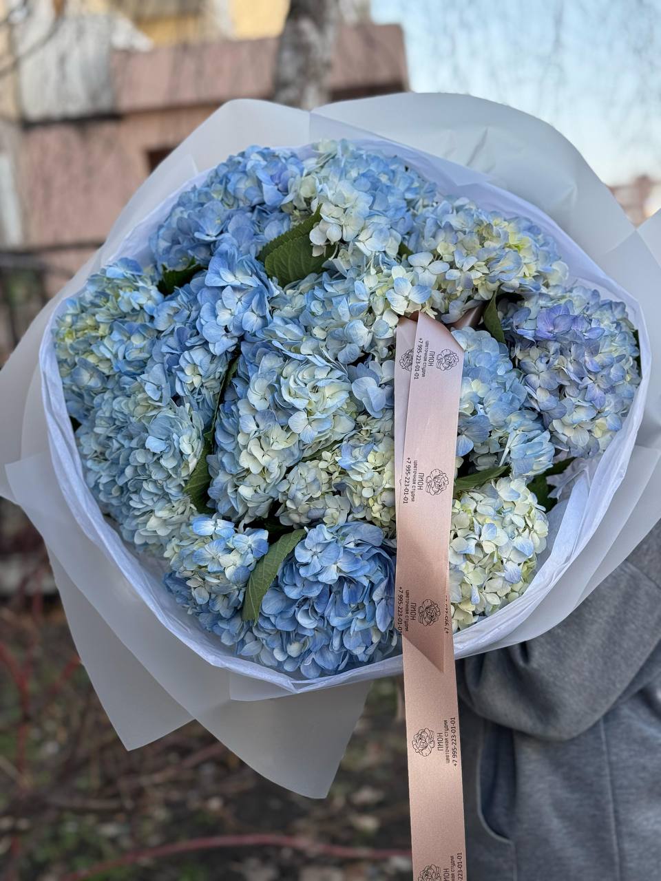 Букет из голубой гортензии