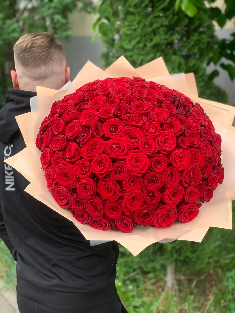 Букет из 101 розы сорта Рэд наоми с крупным бутоном